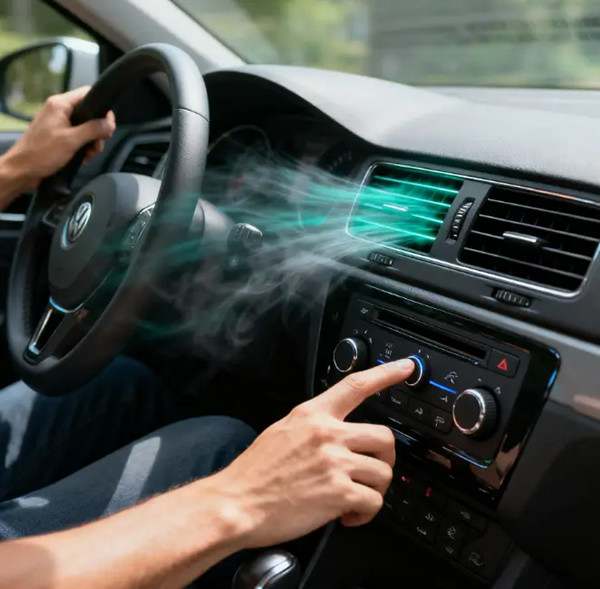 这种刺鼻的气味背后,隐藏着三个核心部件的“藏污点”: 首先,空调滤芯是汽车的“空气口罩”,负责过滤进入车内的灰尘、花粉、尾气颗粒等杂质。然而,如果长期不清理,它会变成灰尘的“储存库”。车辆行驶时,路面扬尘、尾气中的颗粒物会被滤芯拦截并积聚在纤维缝隙里;车内人员脱落的皮屑、毛发,以及开窗带入的柳絮、沙尘,也会附着在滤芯上,越积越厚。当空调启动时,风机瞬间运转,滤芯表面松散的灰尘会被直接吹向车内,形成“初启动灰尘暴击”。尤其超过半年未换滤芯的车辆,这种味道会格外明显。 其次,蒸发器是空调制冷的核心部件,却也是异味的“重灾区”。它的工作特性注定了会成为污染物的聚集地。制冷时,蒸发器表面温度低至0℃左右,空气中的水蒸气会凝结成冷凝水,让表面始终处于潮湿状态;空气中的灰尘、细菌会随着气流附着在冷凝水上,而潮湿环境恰好为霉菌和细菌提供了繁殖条件。这些微生物会分解灰尘中的有机物,产生土臭素、硫化氢等挥发性物质,混合成酸腐味、霉味。当空调静置后,这些异味和灰尘会附着在蒸发器表面,启动瞬间随气流喷出,味道比单纯的灰尘更刺鼻。数据显示,88%的汽车空调蒸发器细菌总数会超标,严重时每平方厘米细菌数可达9万多个。 最后,风道管道是连接蒸发器和出风口的“灰尘传送带”,会不断积累污染物。风道内壁粗糙,且长期处于黑暗环境,灰尘容易附着并堆积;车辆行驶时的震动会让风道内的积灰松动,而空调启动时的气流会将这些“陈年灰尘”一并带出;若风道内进水,还会滋生霉菌,让灰尘味混合霉味,形成更复杂的刺鼻气味。 那么,如何才能告别“灰尘暴击”呢?有三个小技巧可以帮助您: